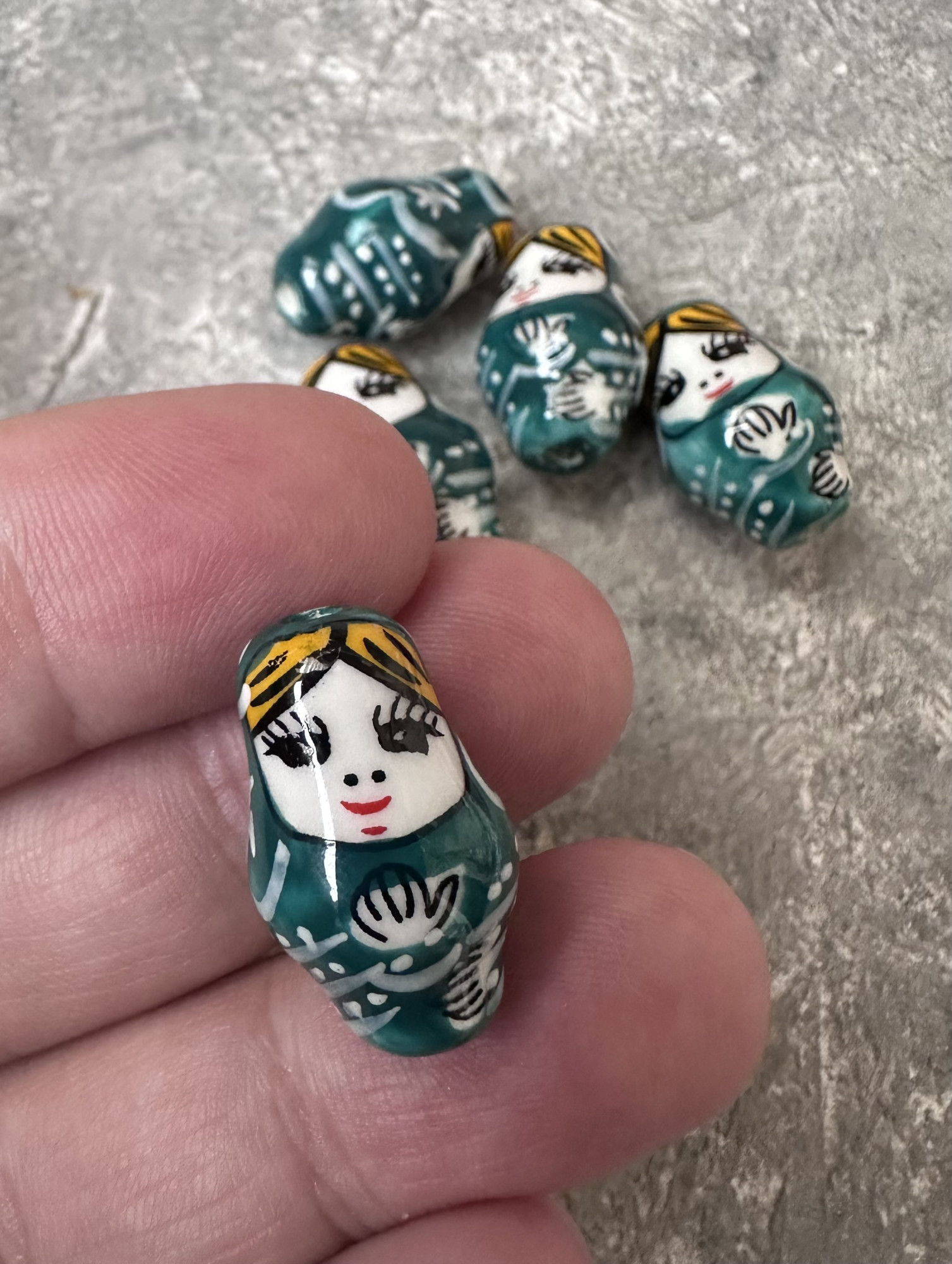 Керамическая бусина, в виде "матрешки";