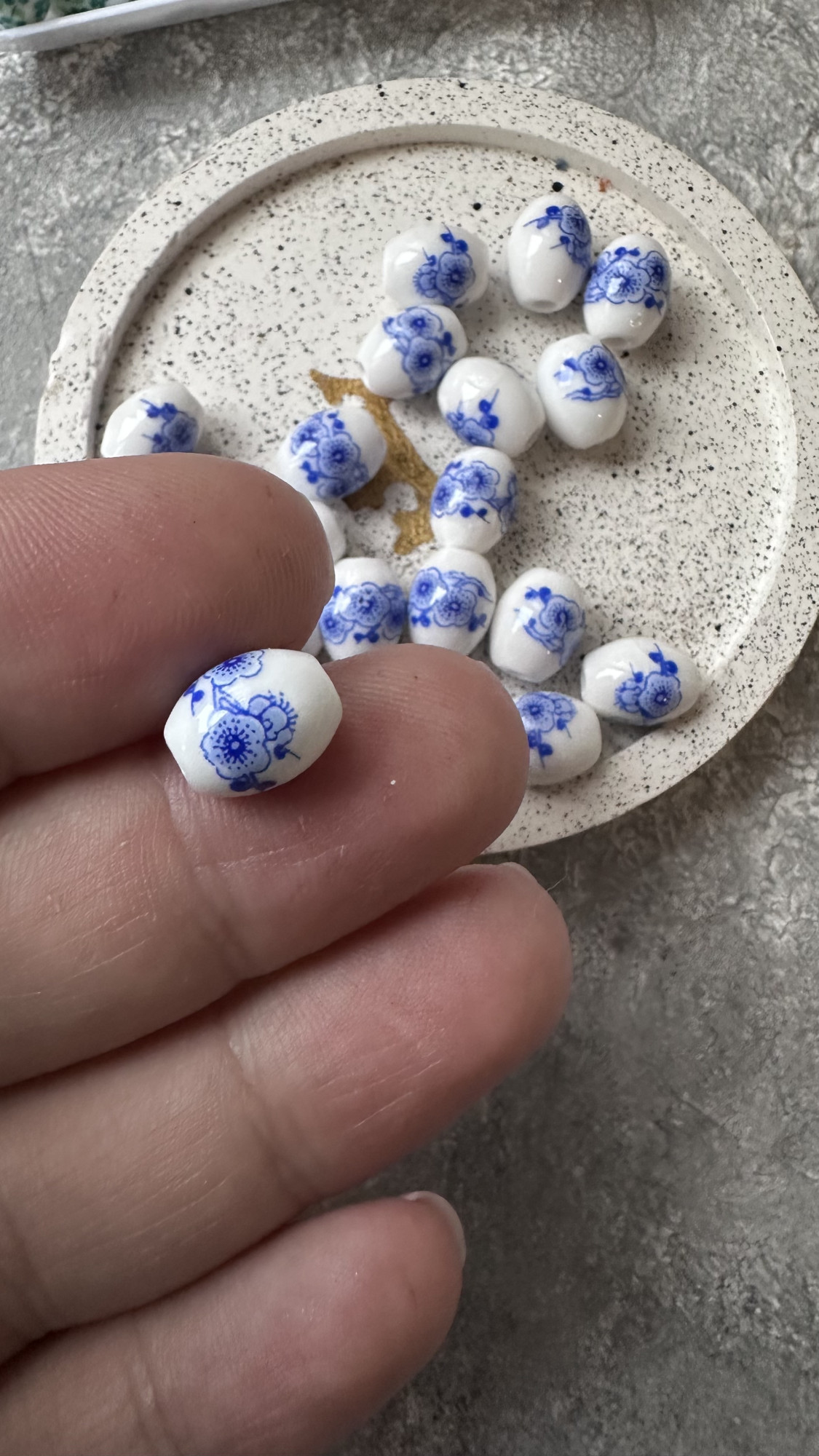 Керамические бусины-бочёнки, синие, 10/8 мм., 5 штук