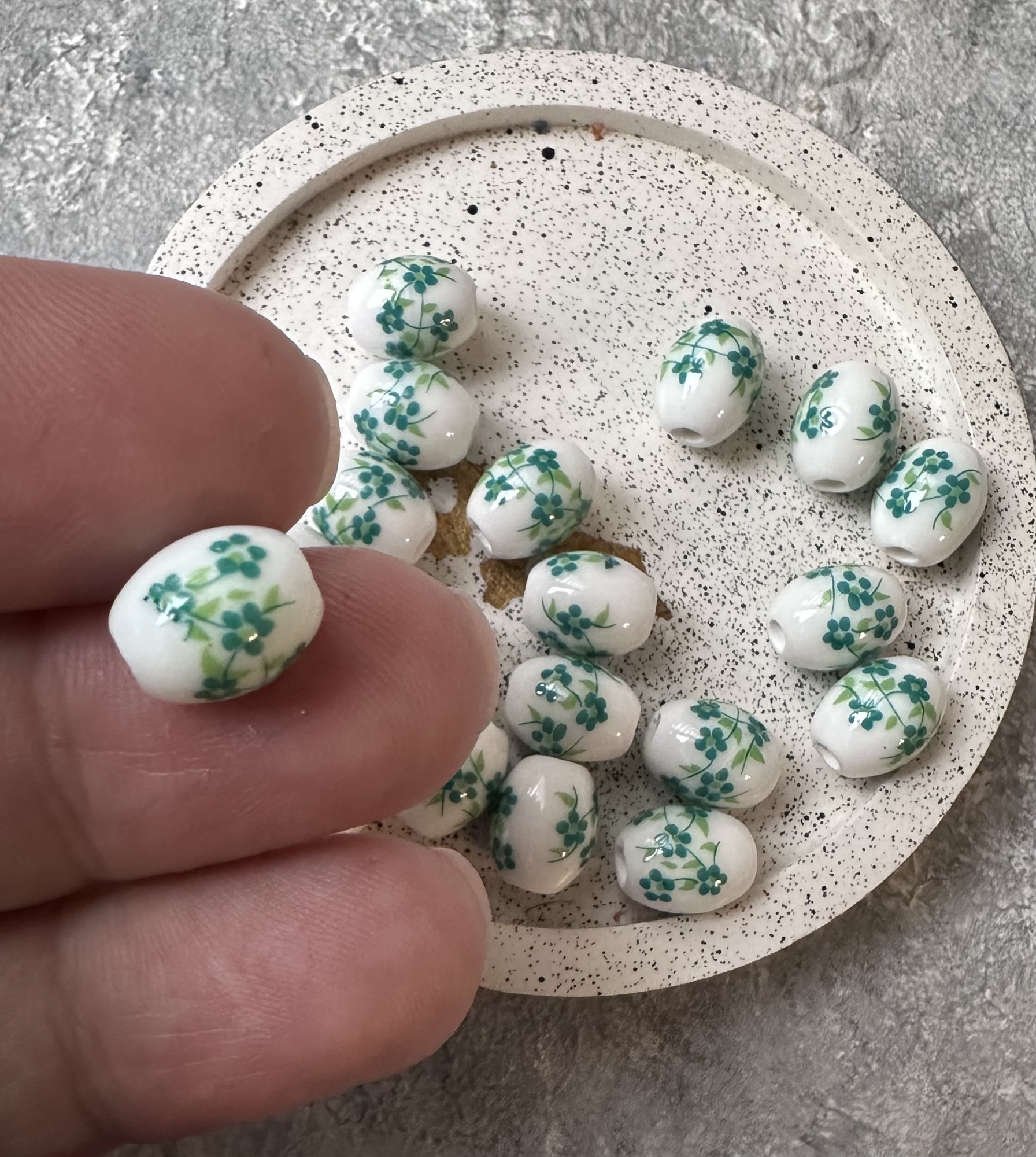 Керамические бусины-бочёнки, зелёные, 10/8 мм., 5 штук