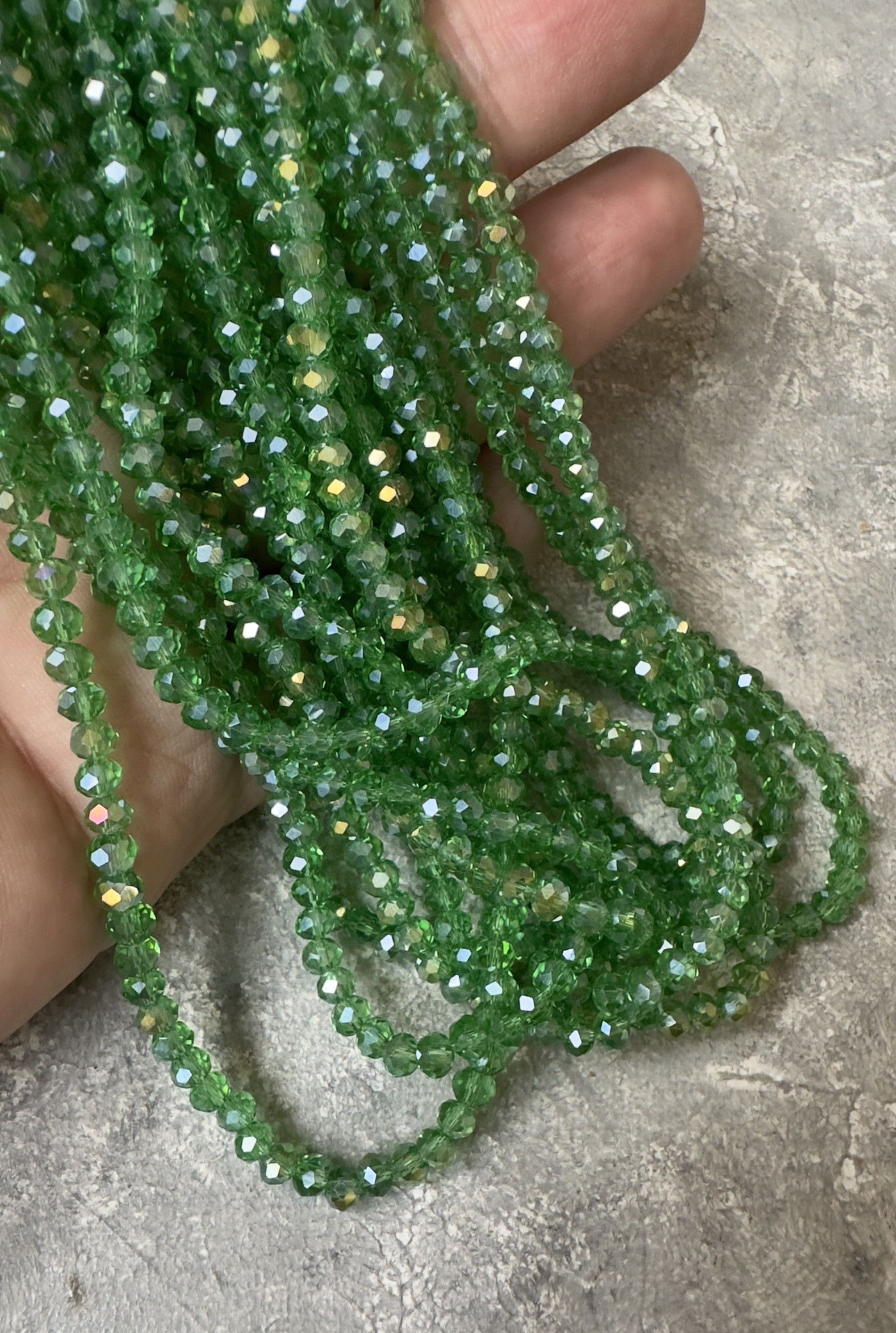 Бусины стеклянные, 4 мм., зелёные перламутровые