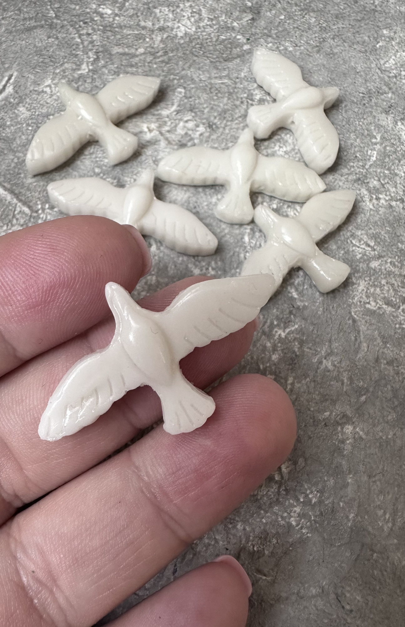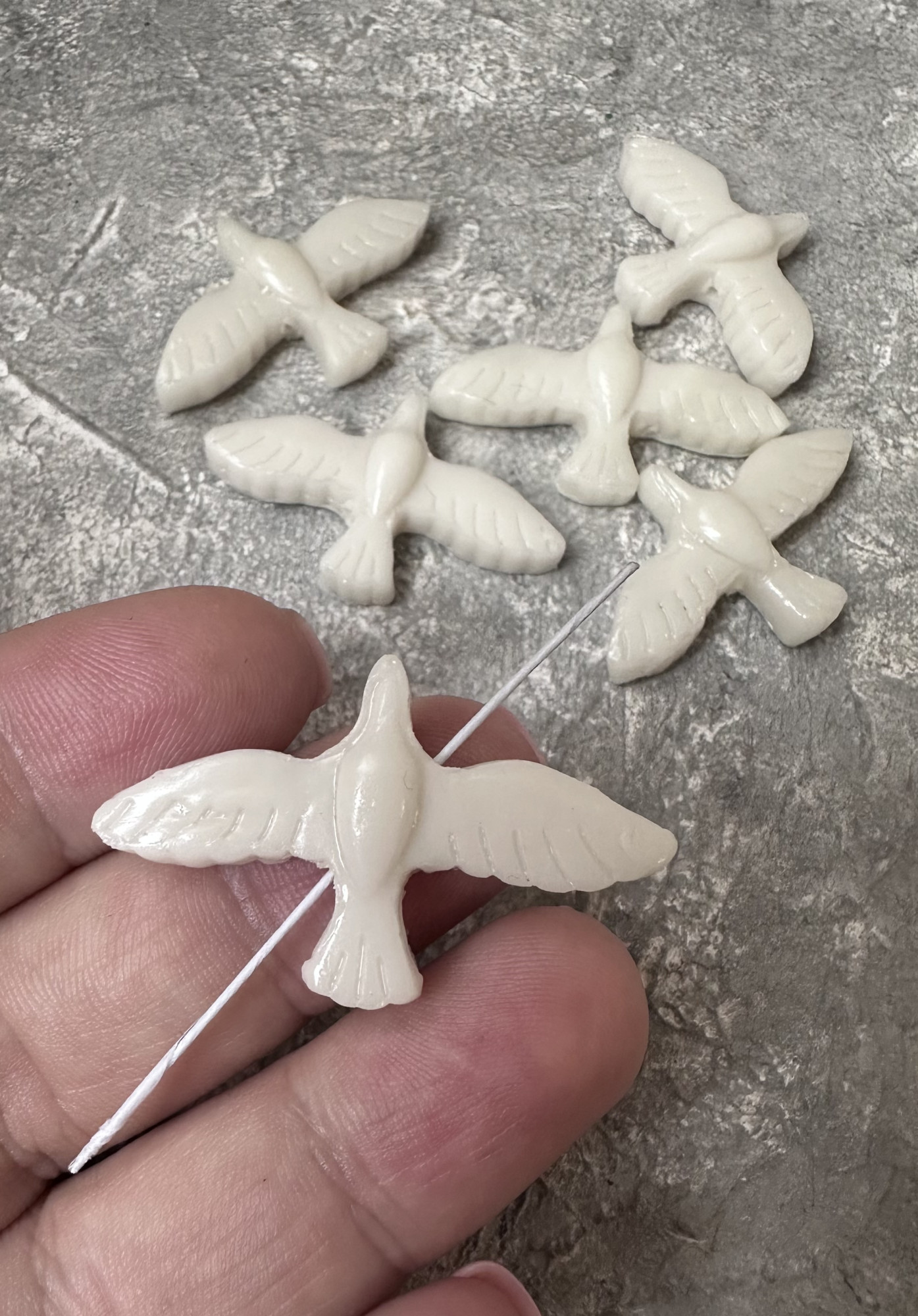 Бусина-птичка ручной работы, из холодного фарфора. Имеет сквозное диагональное отверстие. Размер: 25/40 мм.