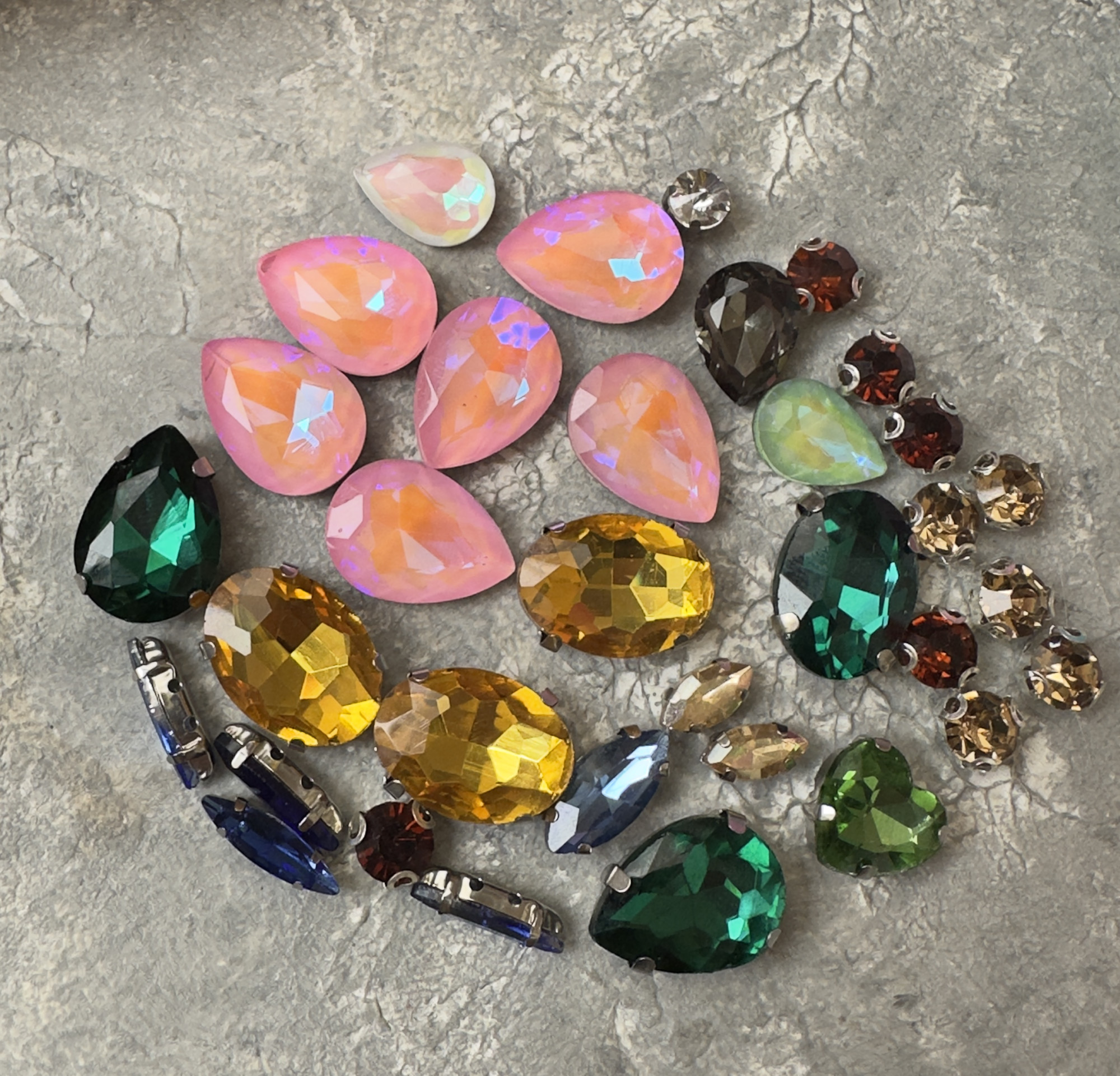 Набор страз в оправах и без оправ;