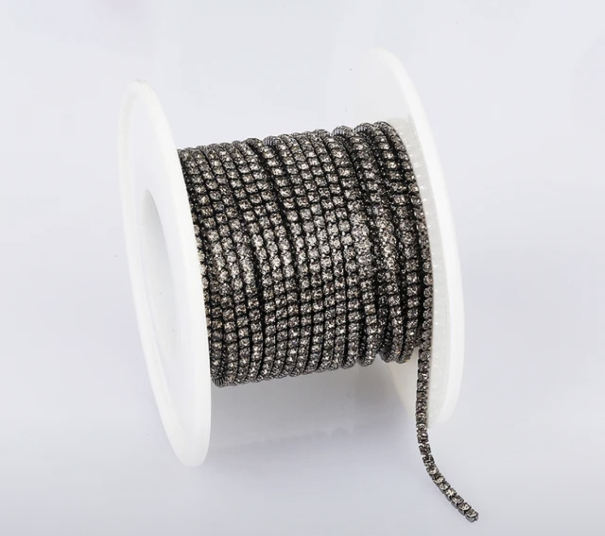 Стразовая цепь, цвет: графит, оправа графит; диаметр звена 1,5 мм, цена указана за отрезок длиной 10см